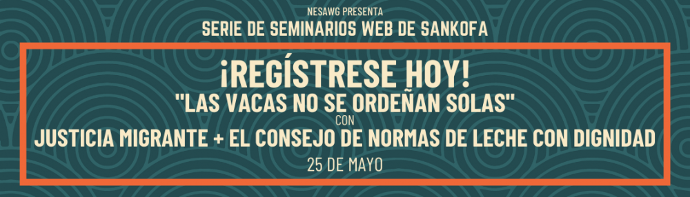 Durante la crisis del Corona Virus, los trabajadores agrícolas migrantes continuaron trabajando día a día para producir la leche y los productos lácteos que llenan los estantes de los supermercados. Únase a El Consejo de Normas de Leche con Dignidad (Migrant Justice and the Milk with Dignity Standards Council) para una presentación de 1.5 horas para obtener más información sobre el innovador programa leche con dignidad (Milk with Dignity) que reúne a trabajadores agrícolas, consumidores, propietarios de agricultores y compradores corporativos para fomentar una industria láctea sostenible del Noreste que avance los derechos humanos de los trabajadores agrícolas, los intereses a largo plazo de los propietarios de granjas y proporciona una cadena de suministro ética para las empresas minoristas de alimentos y los consumidores. A través de leche con dignidad (Milk with Dignity), los trabajadores agrícolas se han asegurado importantes protecciones para su salud y seguridad incluso cuando la pandemia ha puesto a prueba muchas cadenas de suministro hasta el límite. Sabemos que las vacas no se ordeñan solas: aprendan mas de como se pueden envolver y ayudar a expander esta solución poderosa a la cadena de supermercados de Hannaford.
