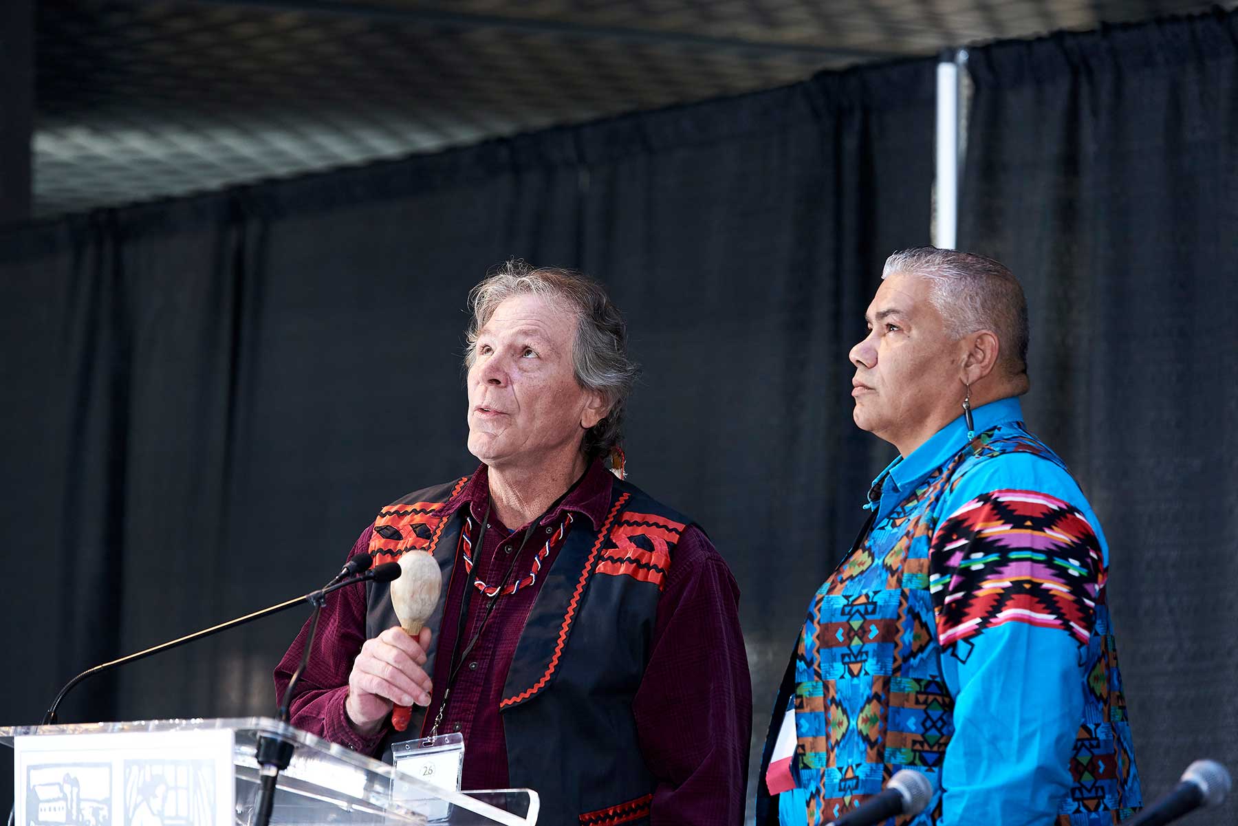 The above photo is Chief Vincent Mann and another member of the Ramapough Lenape Nation Turtle Clan leading a blessing at our 2019 conference in Jersey City, NJ. They were awarded our Mutual Aid Award in 2019. Read more here.