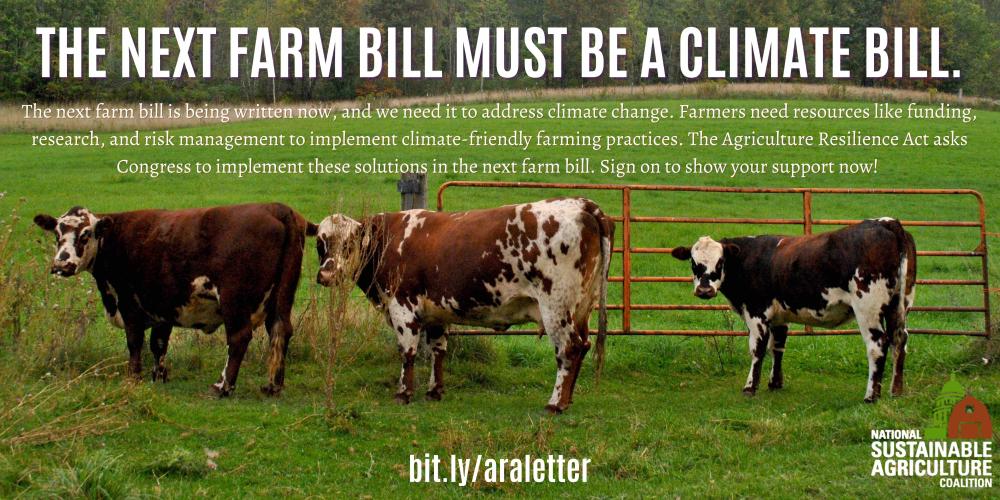 We cannot afford to wait. Climate change is an urgent challenge. Agriculture can and must be part of this country's bold climate action. Please act now to incorporate the Agriculture Resilience Act into the 2023 Farm Bill.